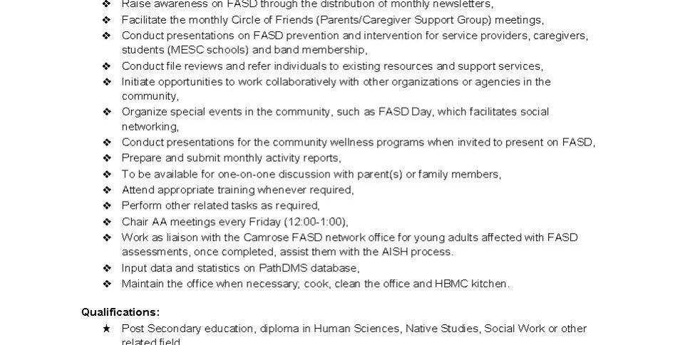 Samson Integrated Family Services is seeking a dedicated FASD Coordinator to support community wellness initiatives.